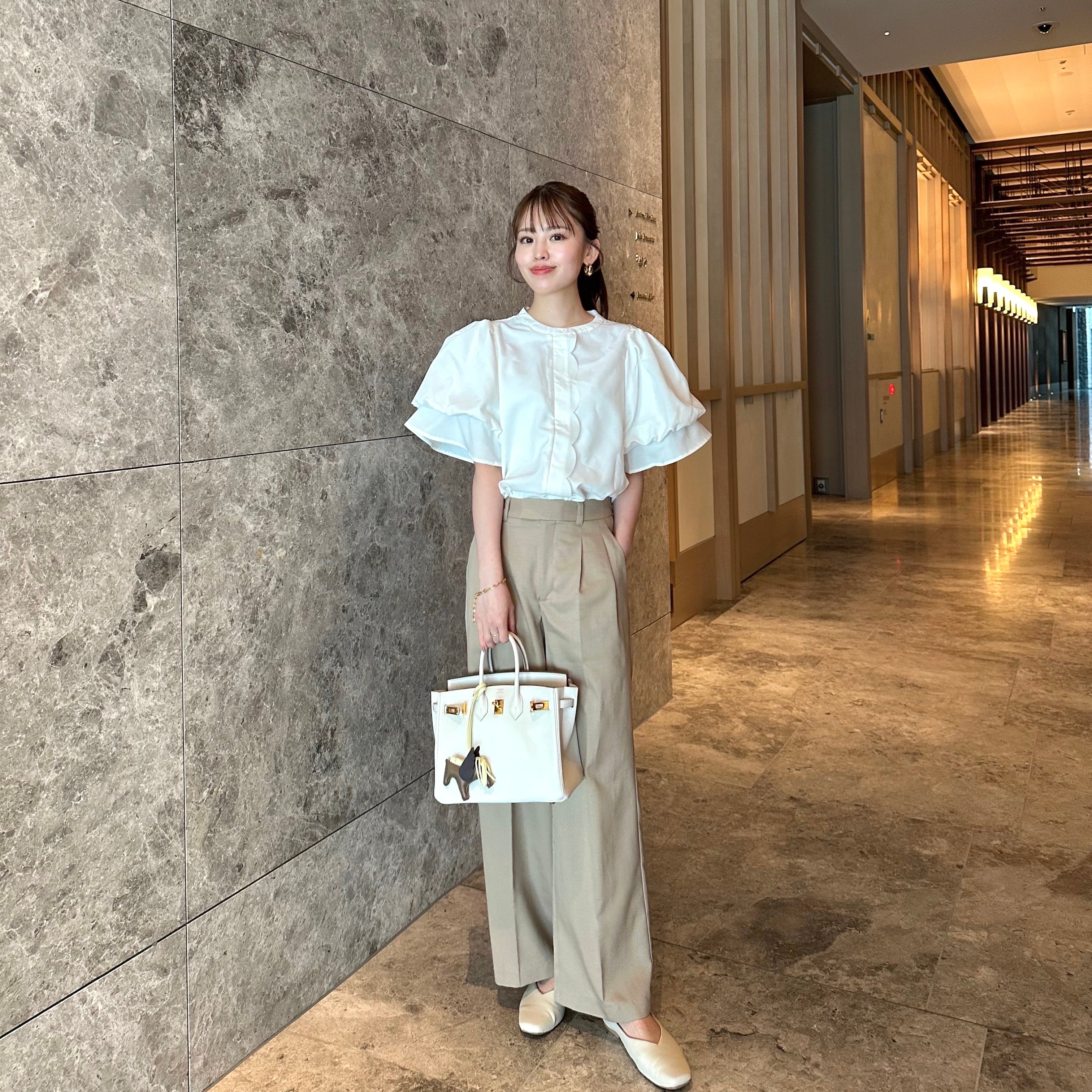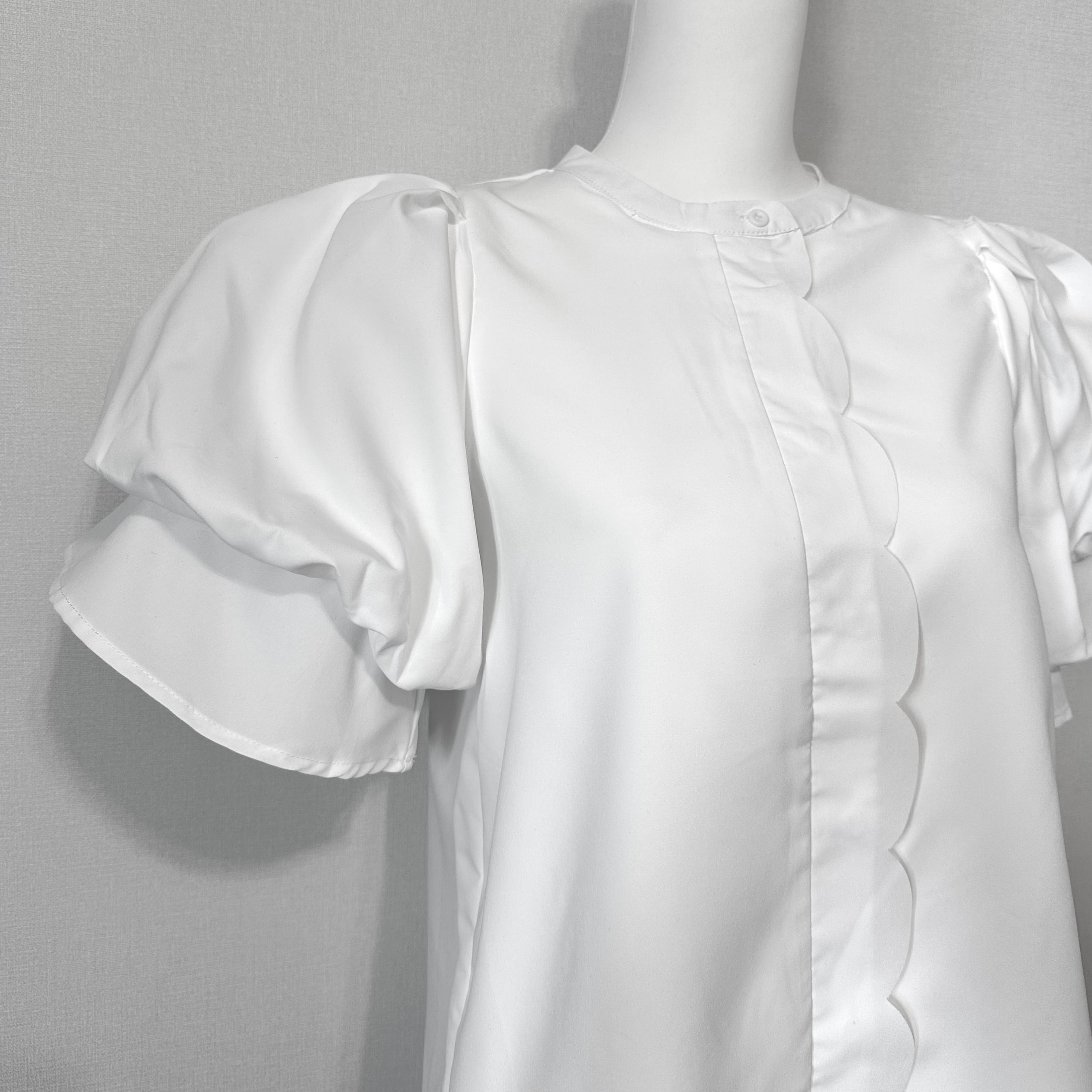 ボリューム袖が特徴でシンプルながらも目を惹く仕上がりに。