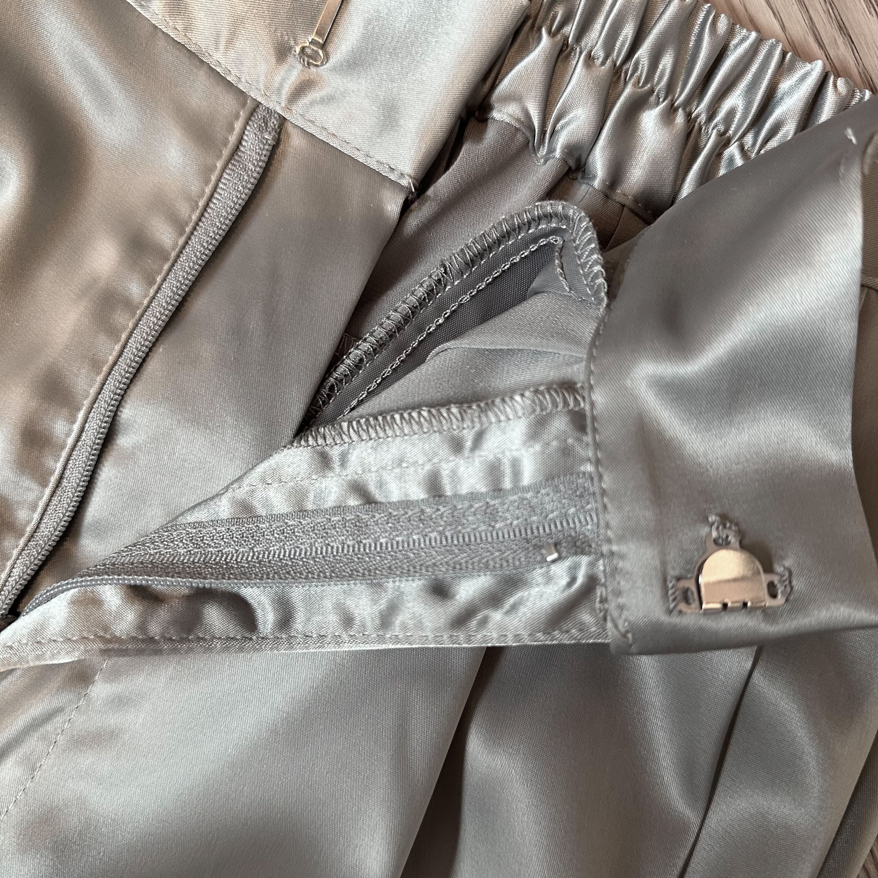 華やかさを演出してくれる上品な光沢のワイドパンツ。