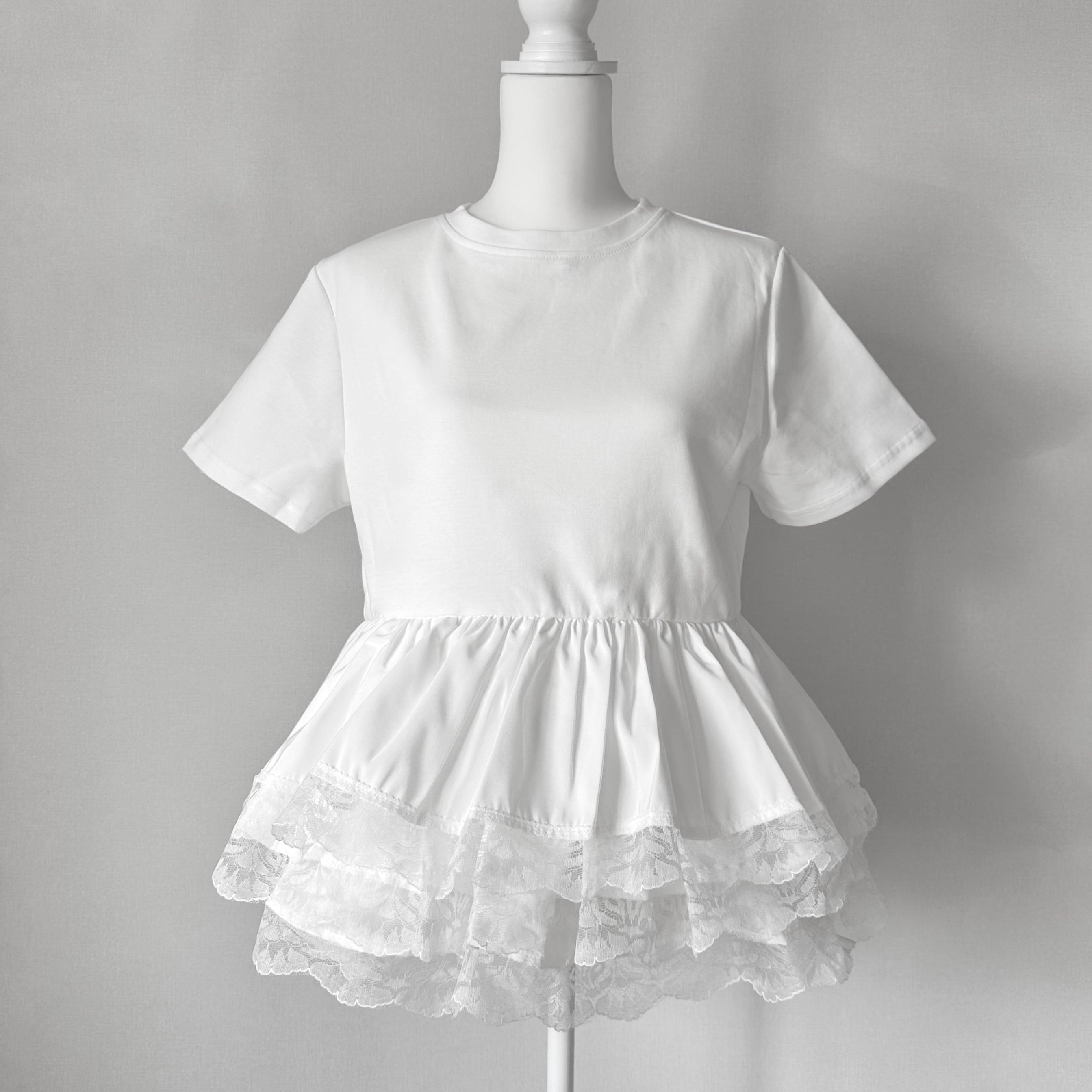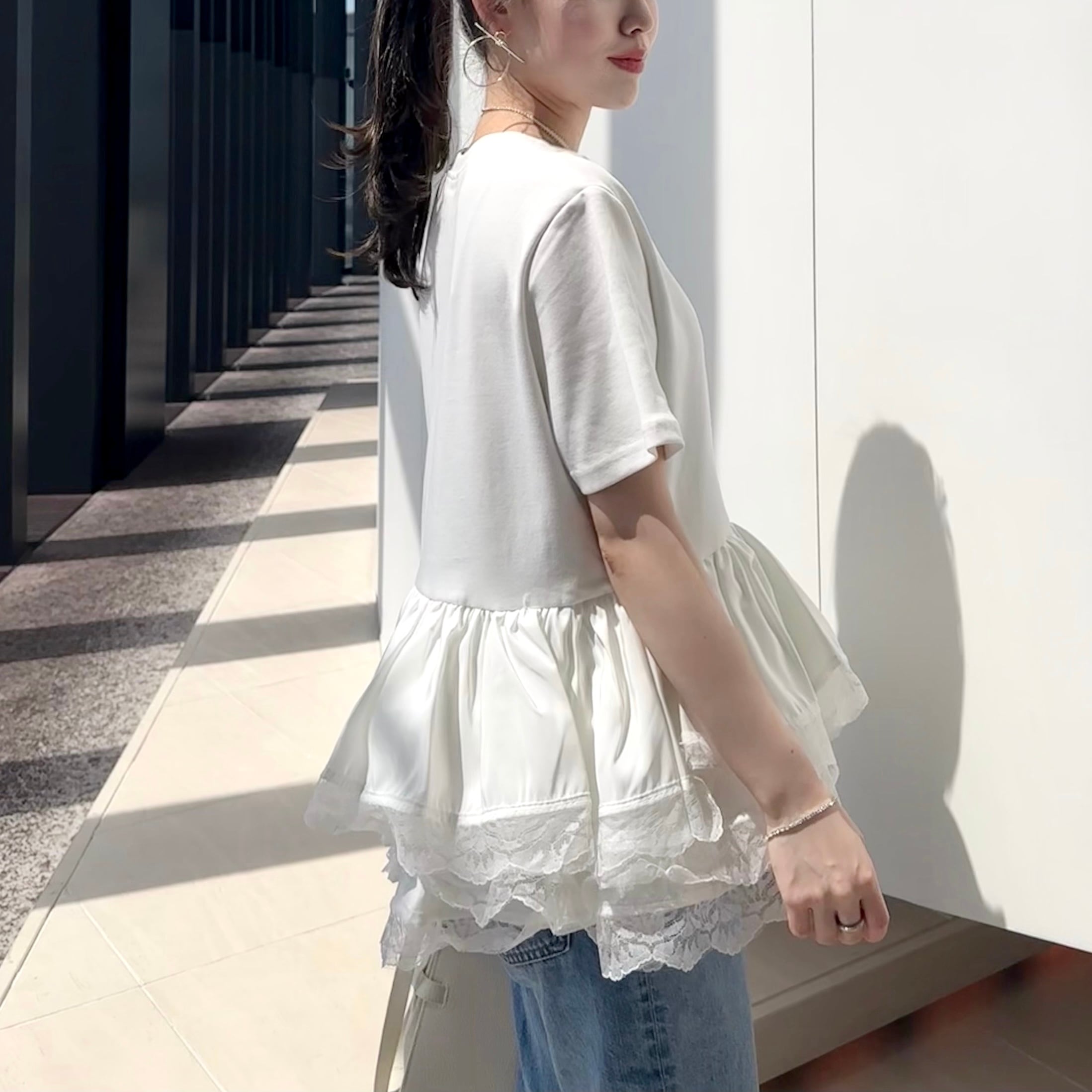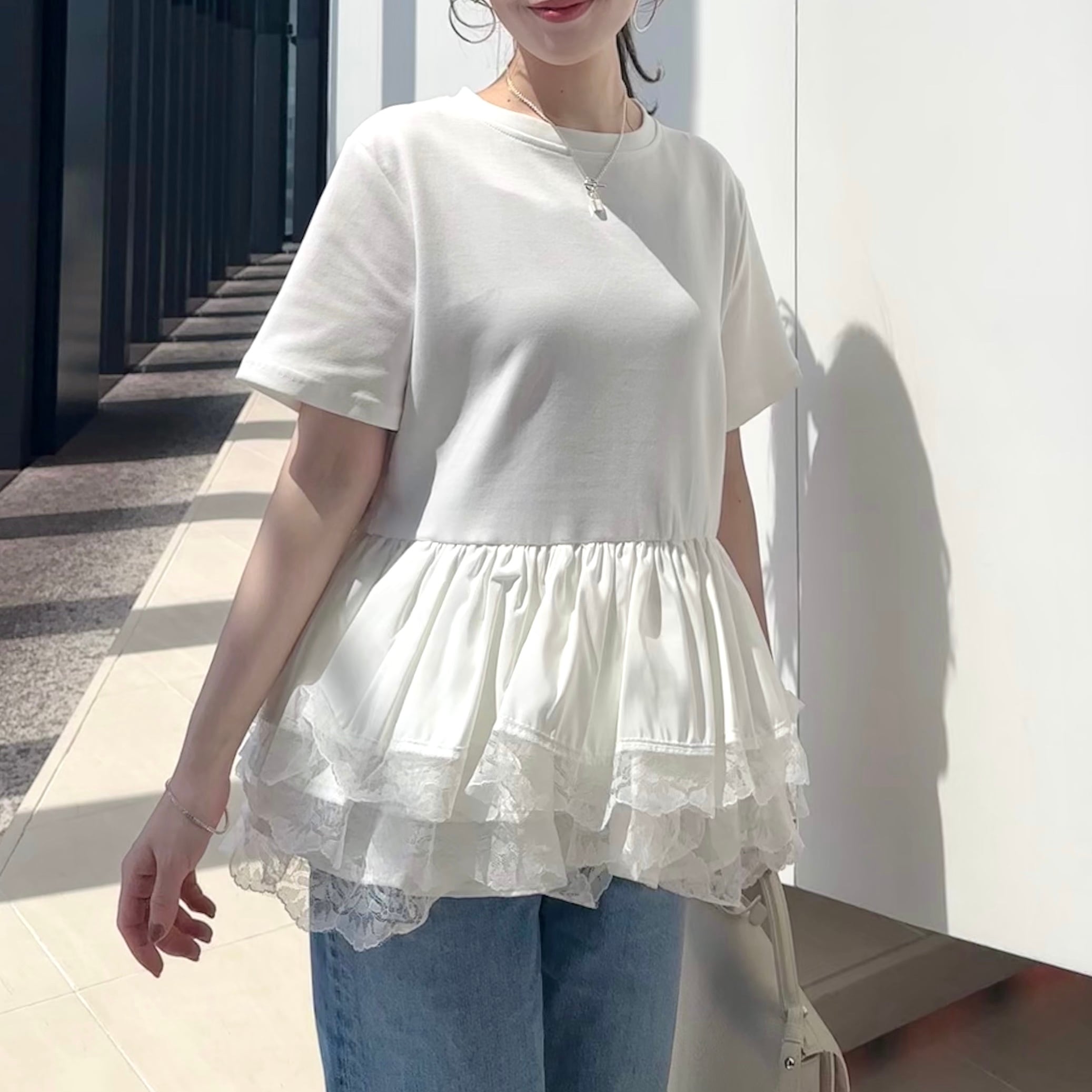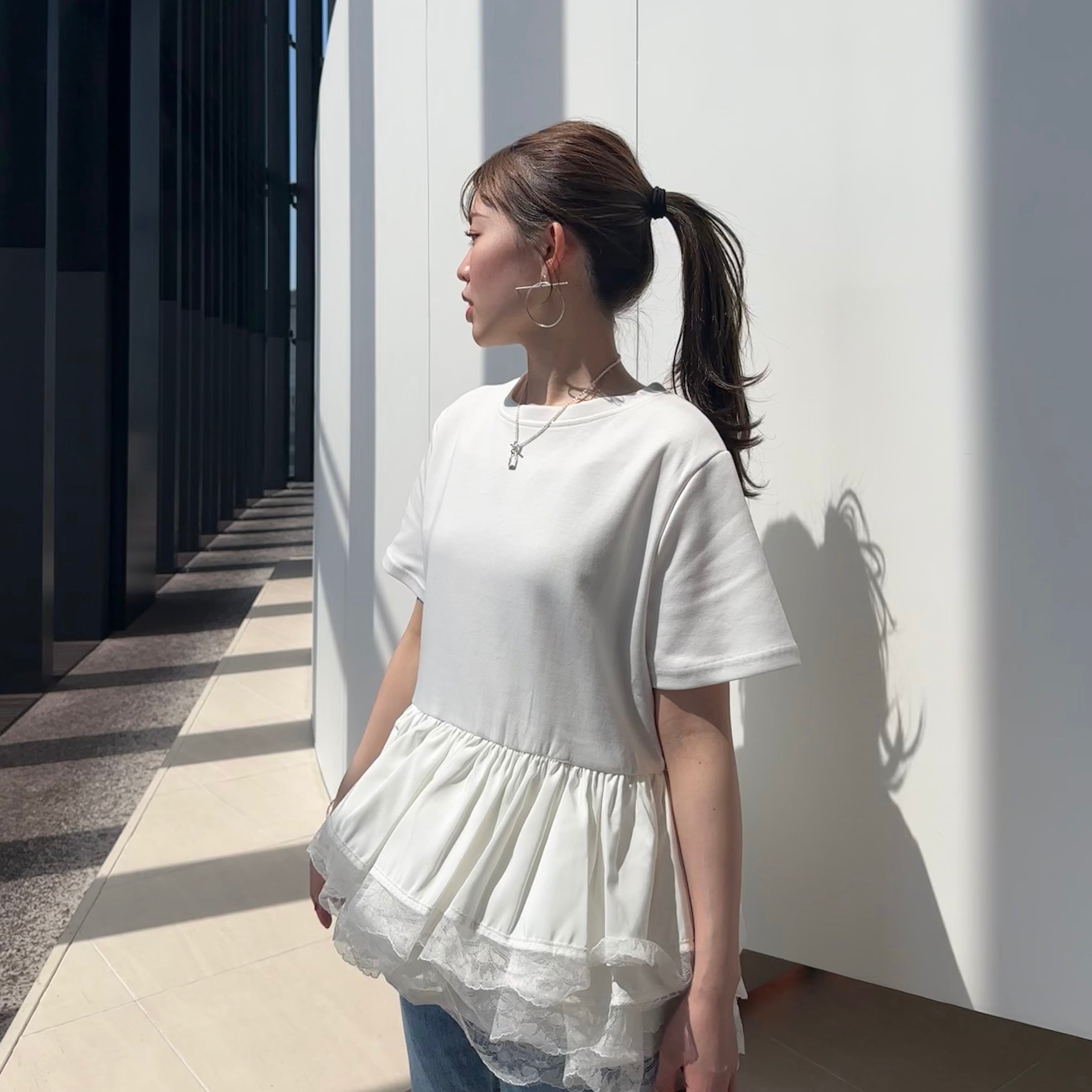 高めのウエスト位置から広がるペプラムデザインはスタイルアップを叶えてくれます。