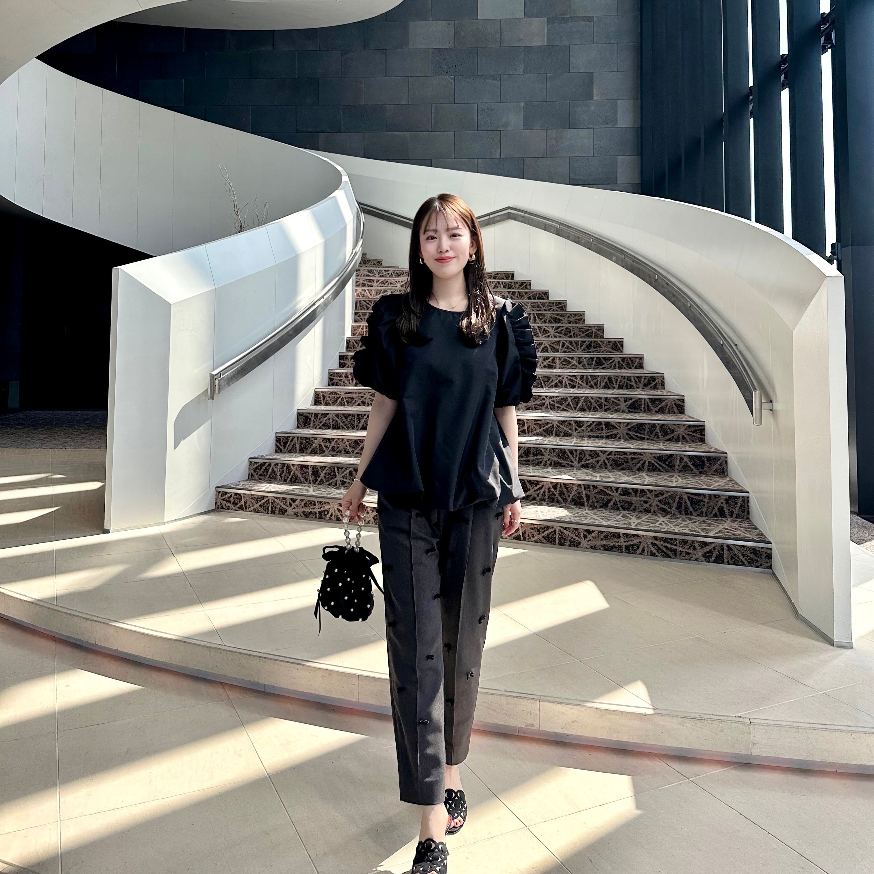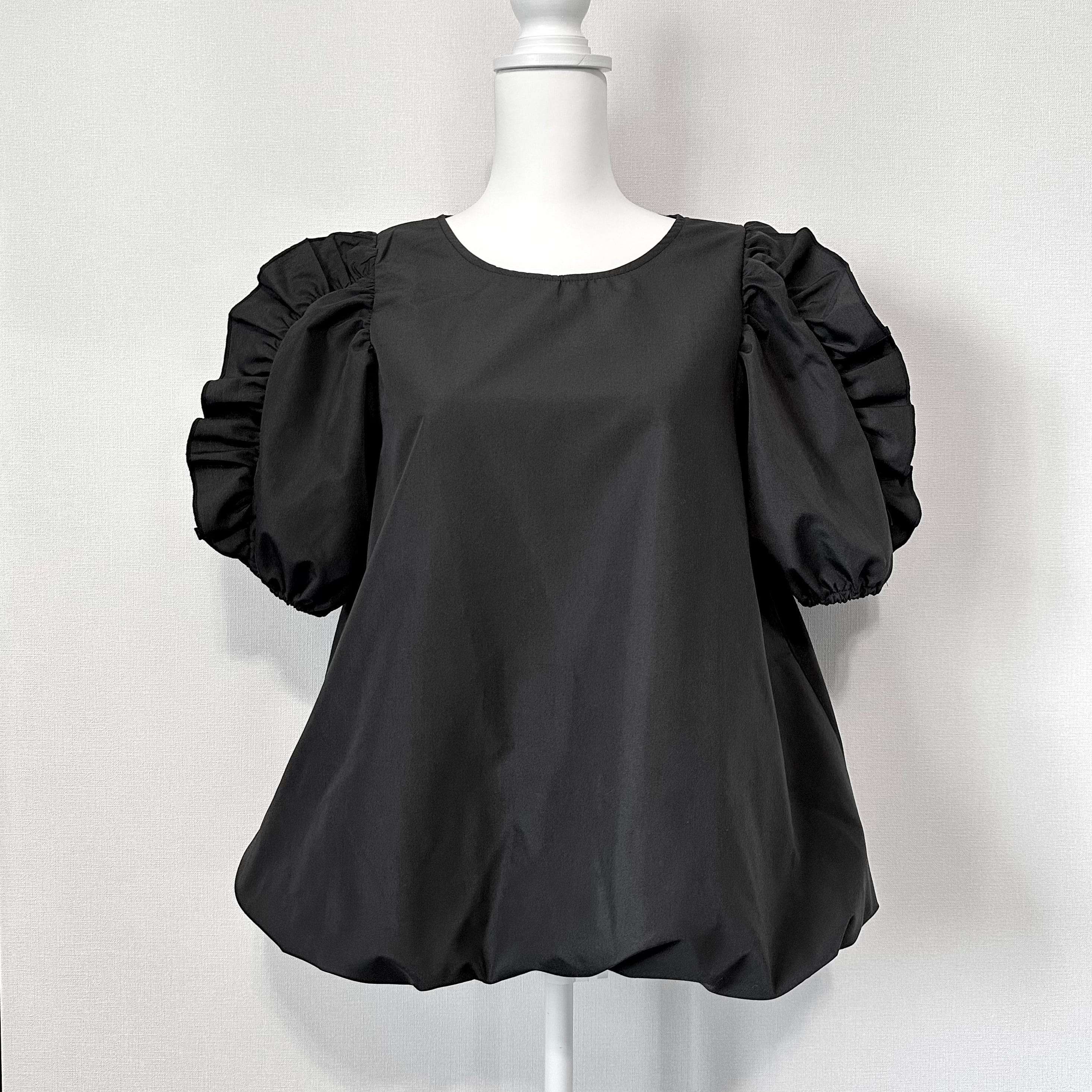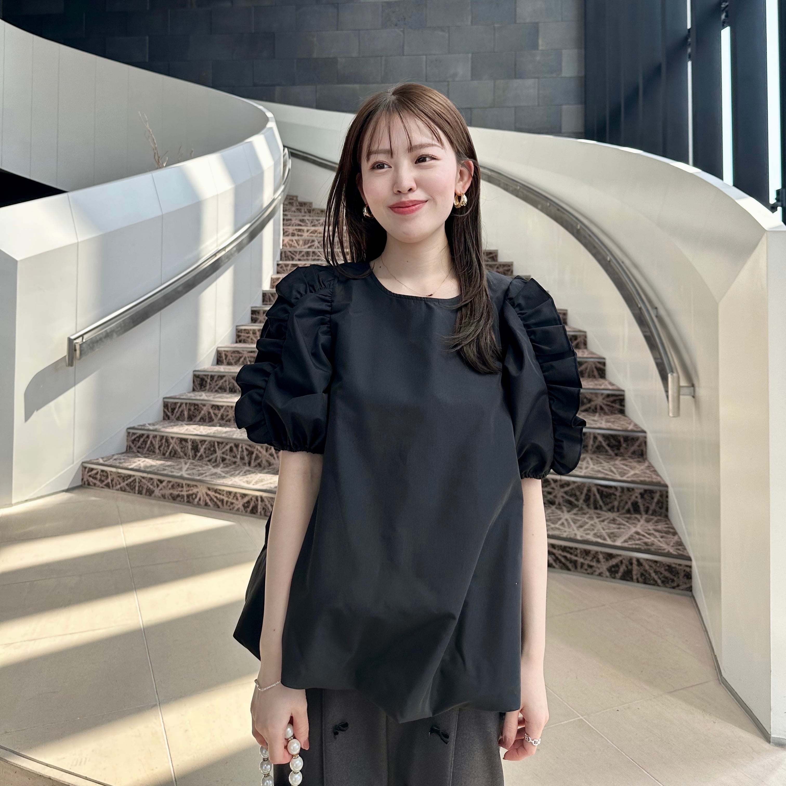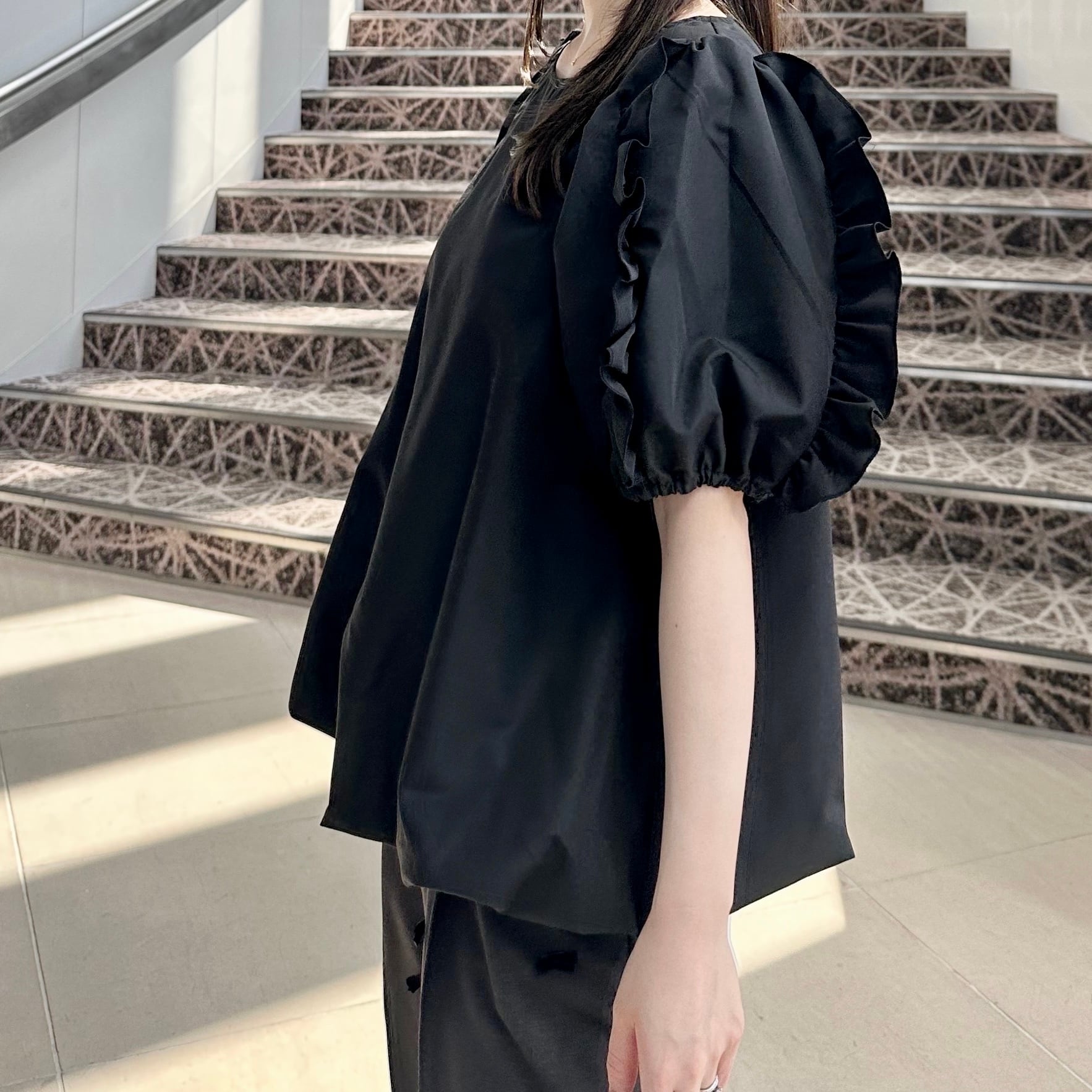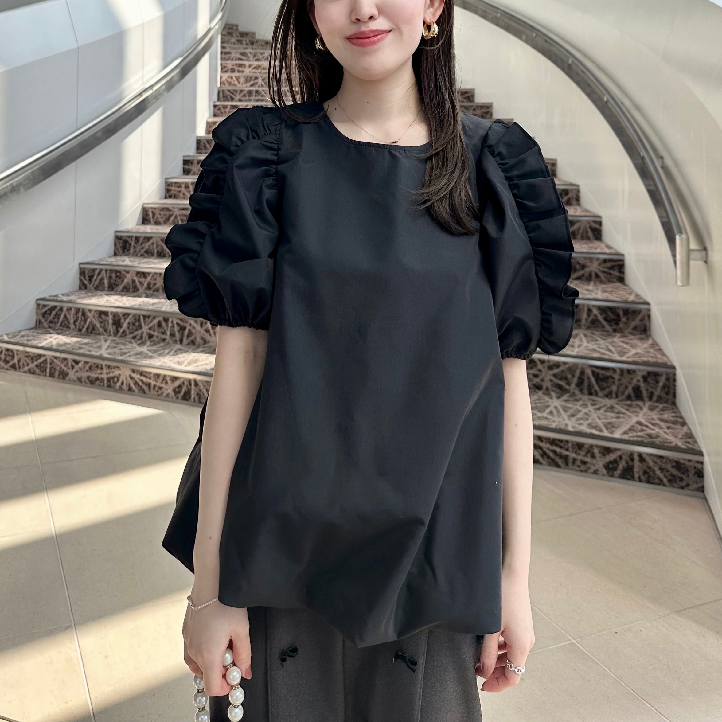 お袖のフリルデザインと 愛らしく膨らむ裾バルーンは360度どこから見ても完璧なブラウス。