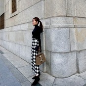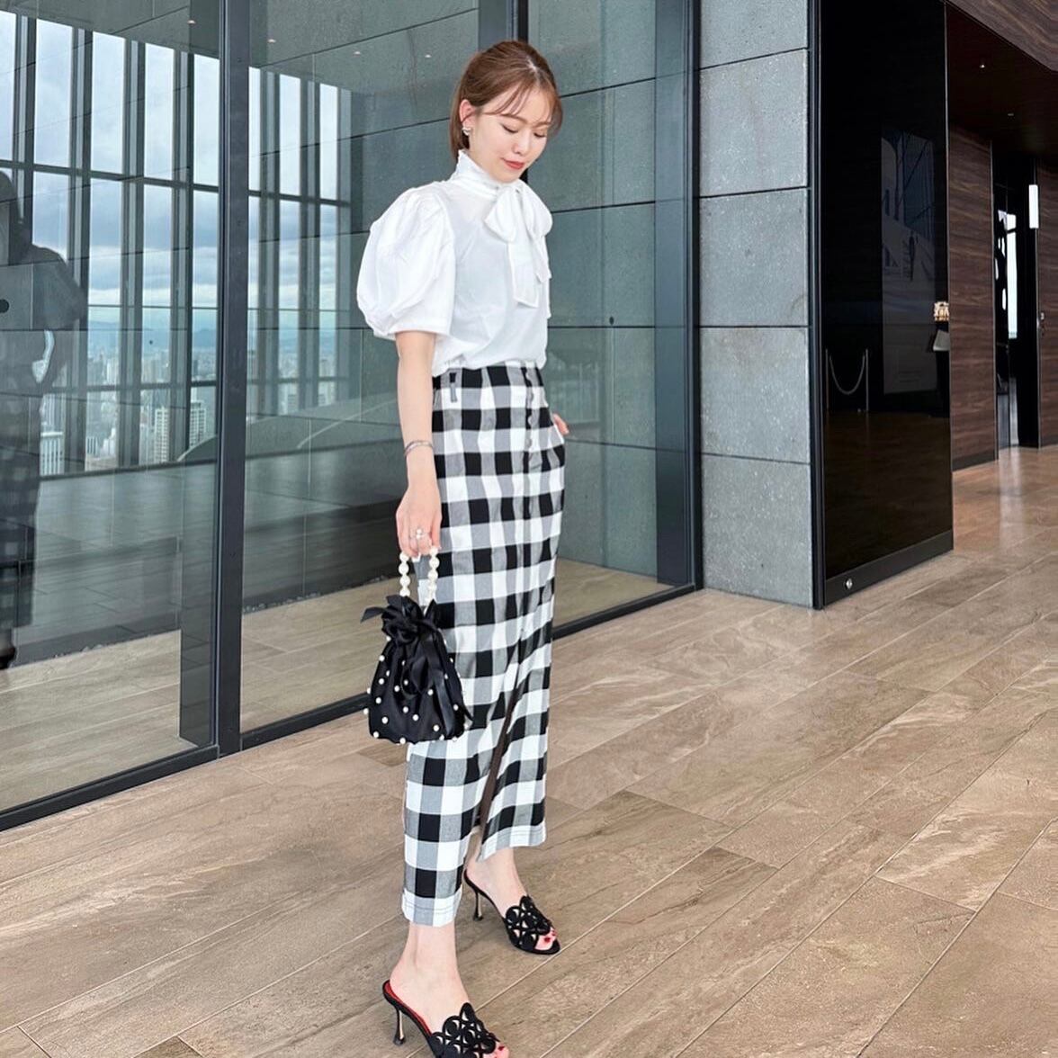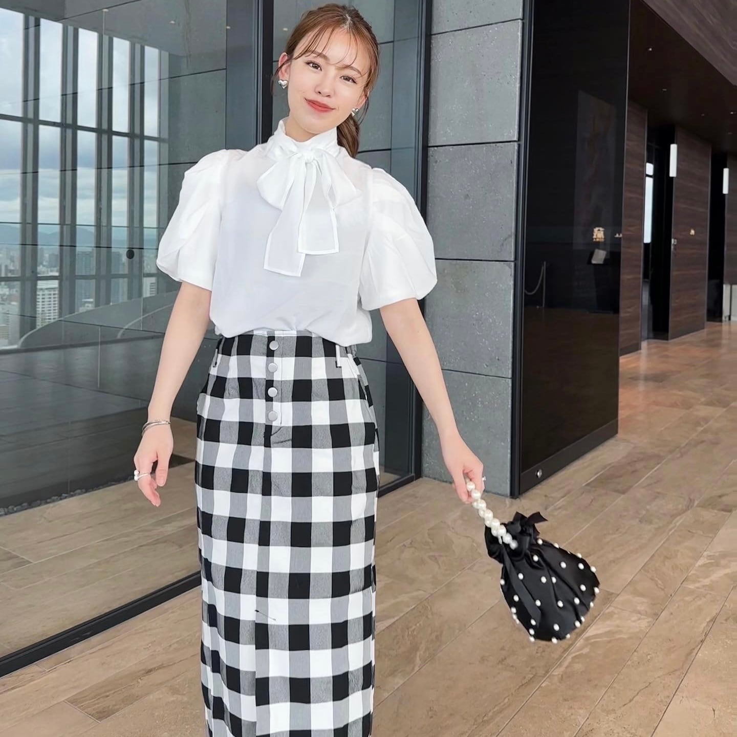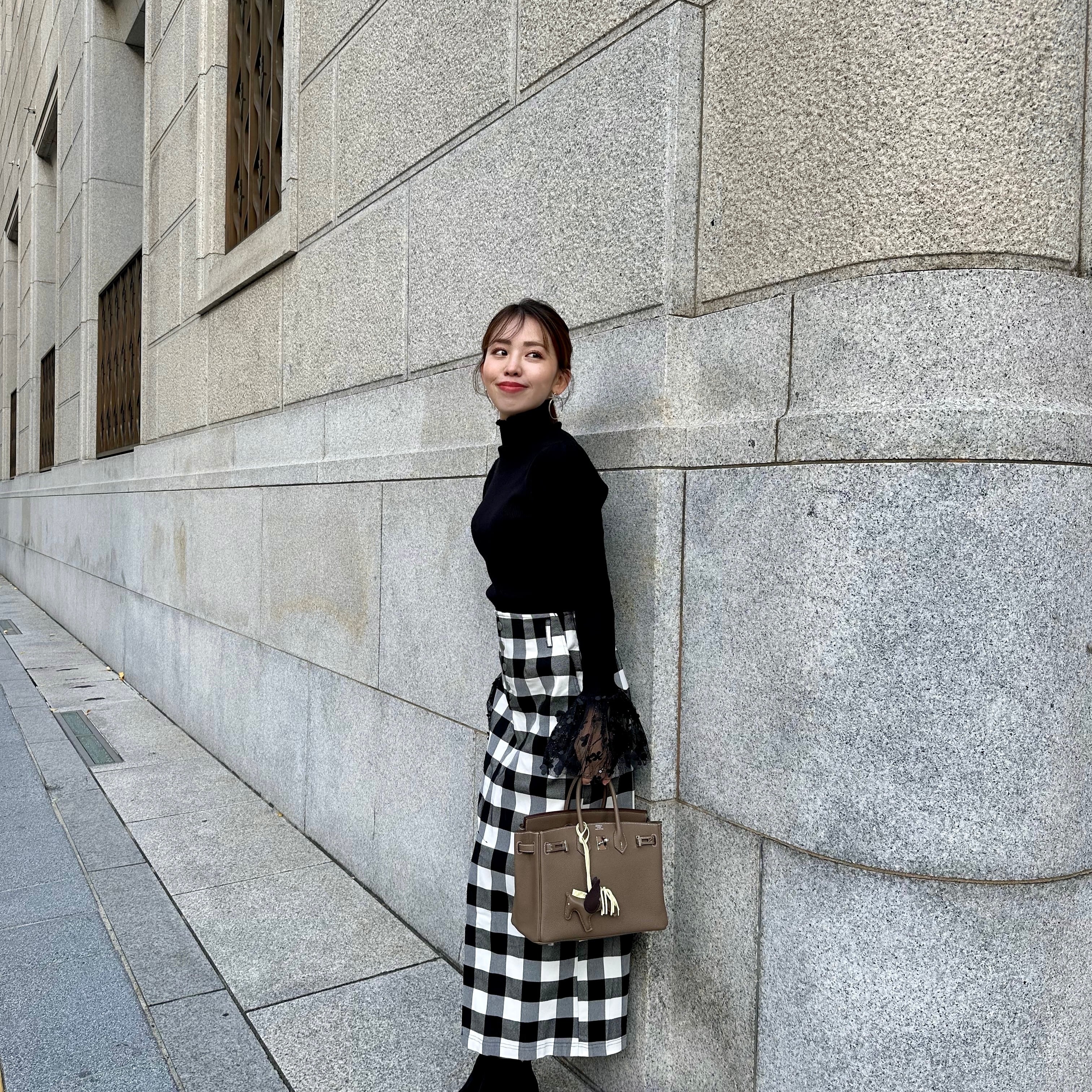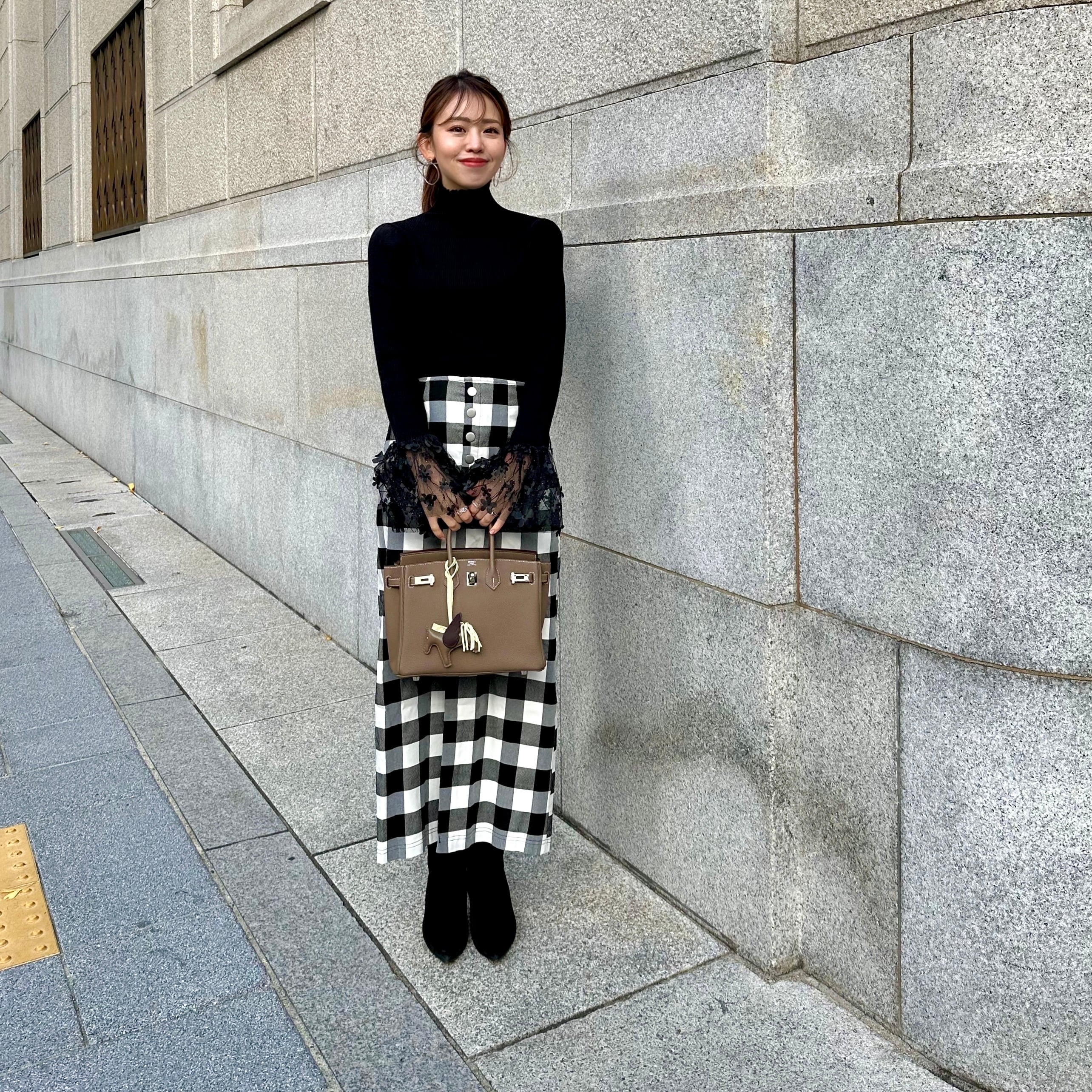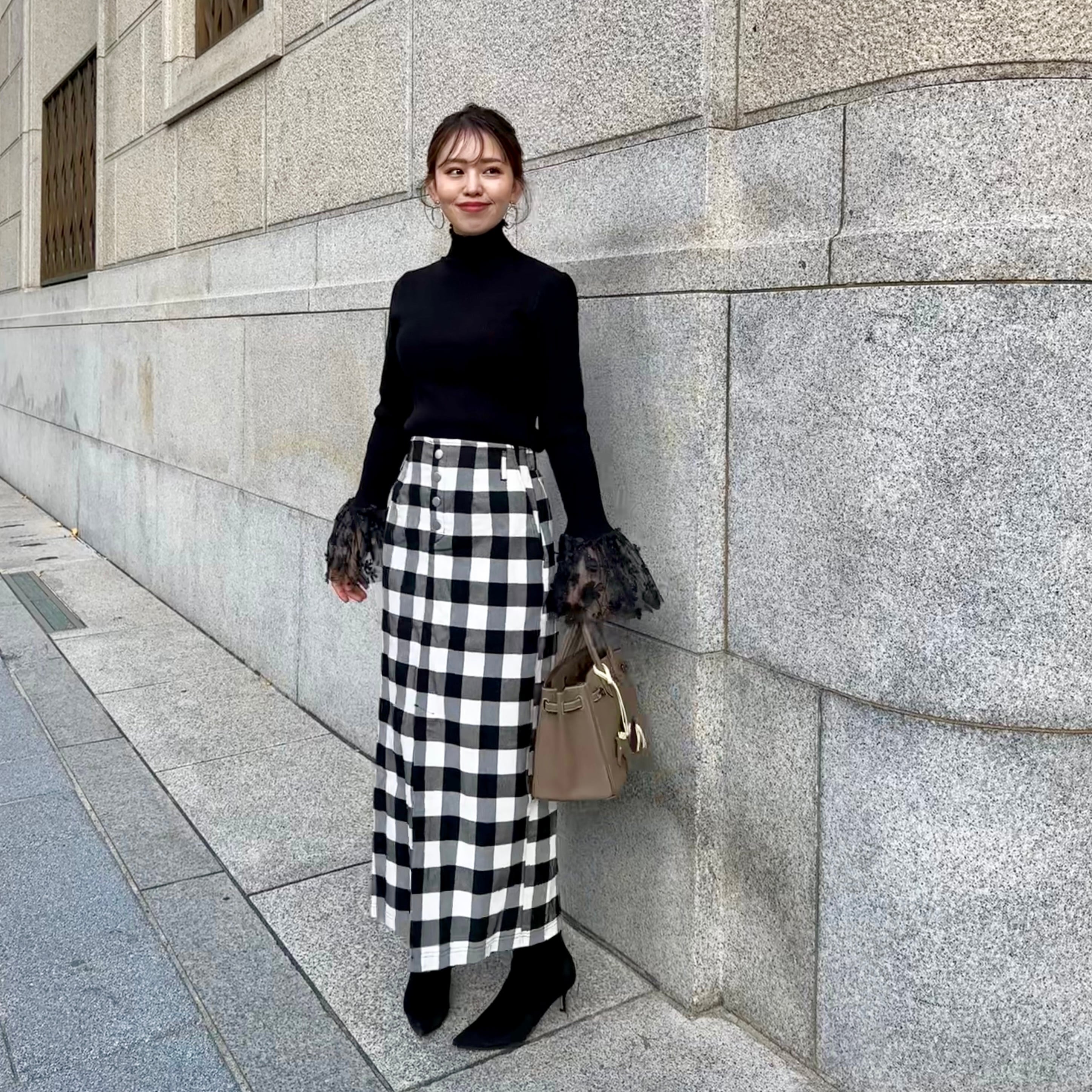 モノトーンのチェックデザインがカジュアルになりすぎず、大人のこなれた雰囲気に。