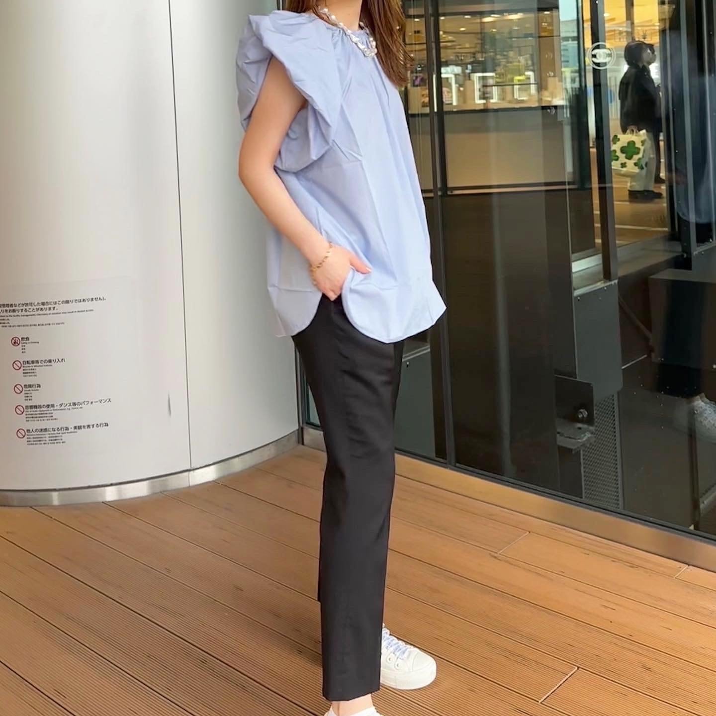 気になる腕回りを隠し. 首周りにギャザーが入っているのでお顔をスッキリ魅せてくれるのも◎