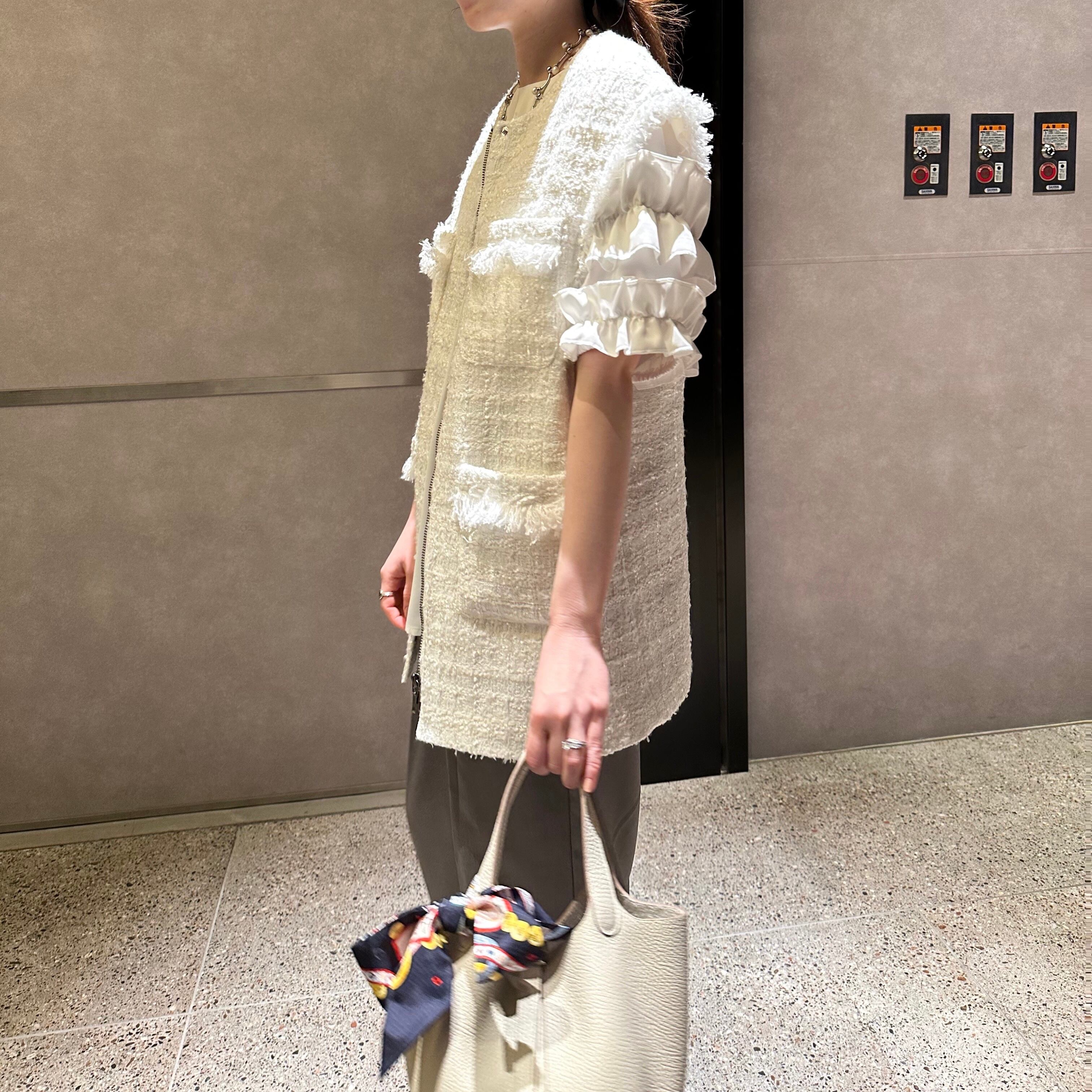 裾は前後差をつけたシャツテールで、気になるヒップ周りもカバーしてくれます。