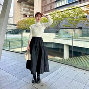 トレンド感はありつつクラシカルな雰囲気も感じられるデザインはシンプルなトップス合わせでも華やかなコーディネートが完成します。