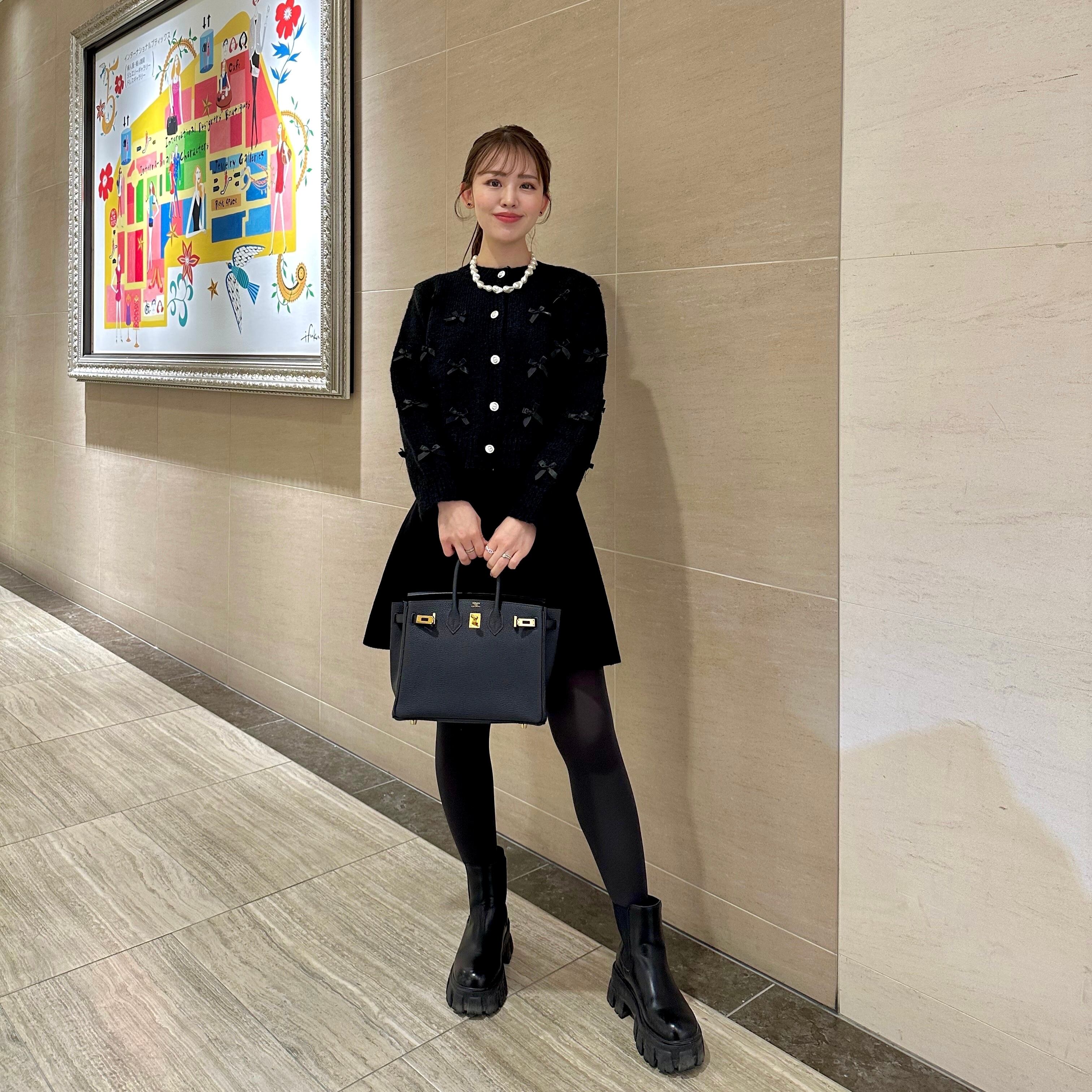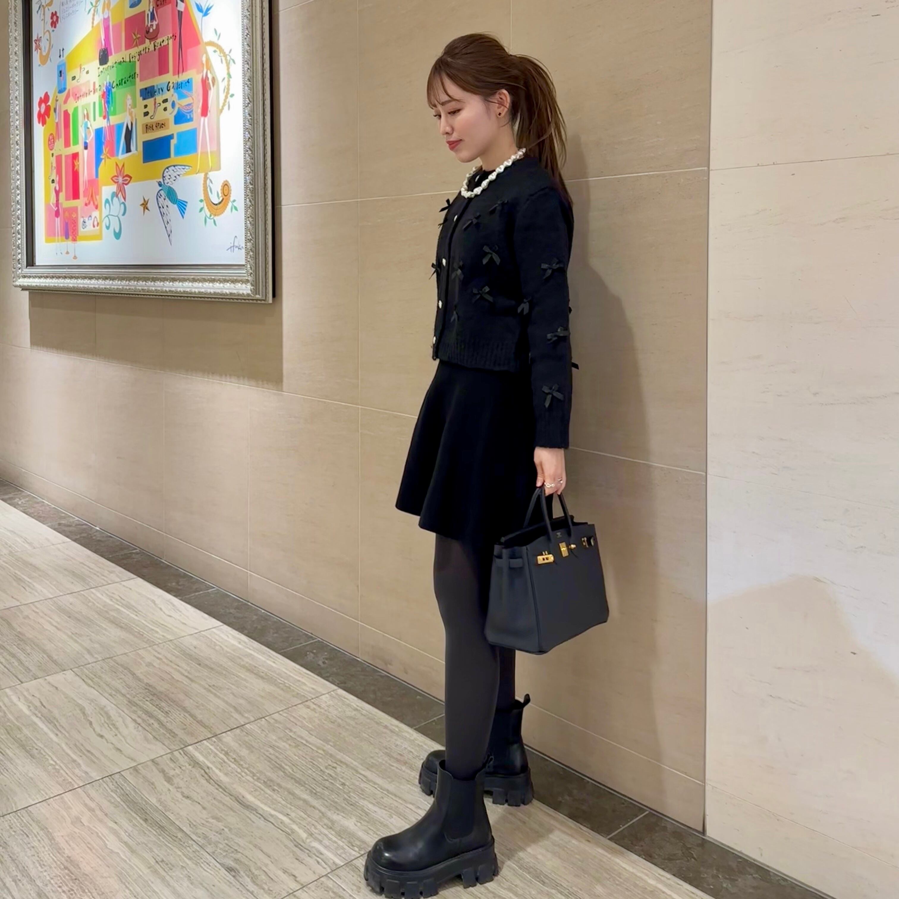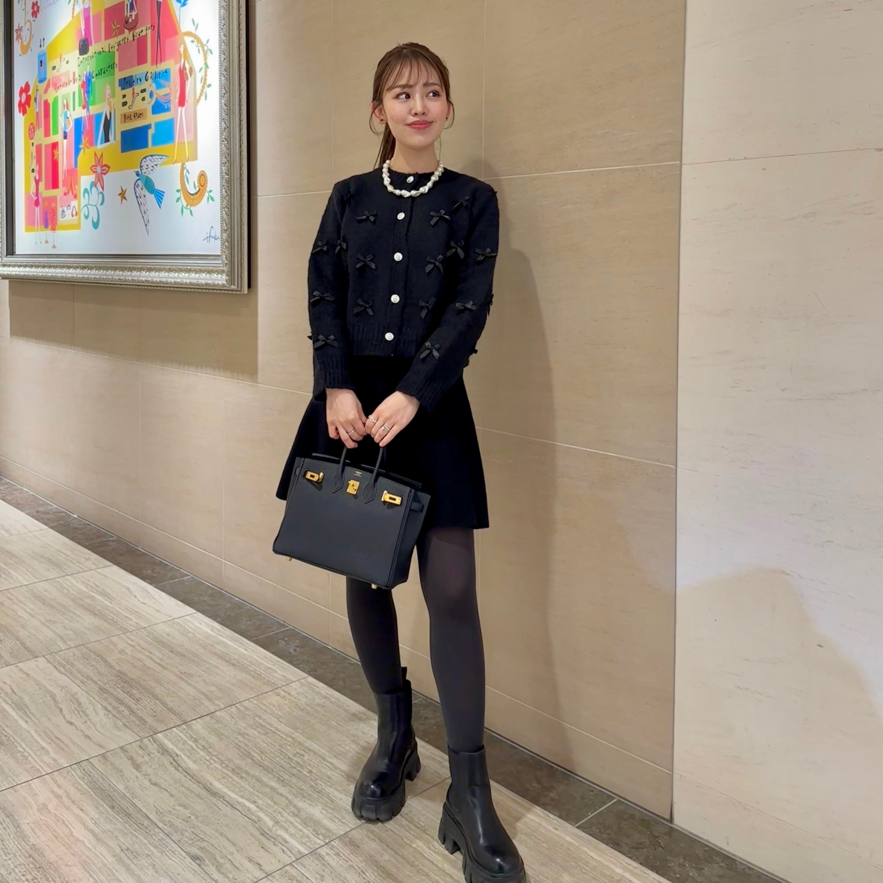 散りばめられたリボンがフェミニンな雰囲気をぐっと引き立ててくれるニットカーディガン。
