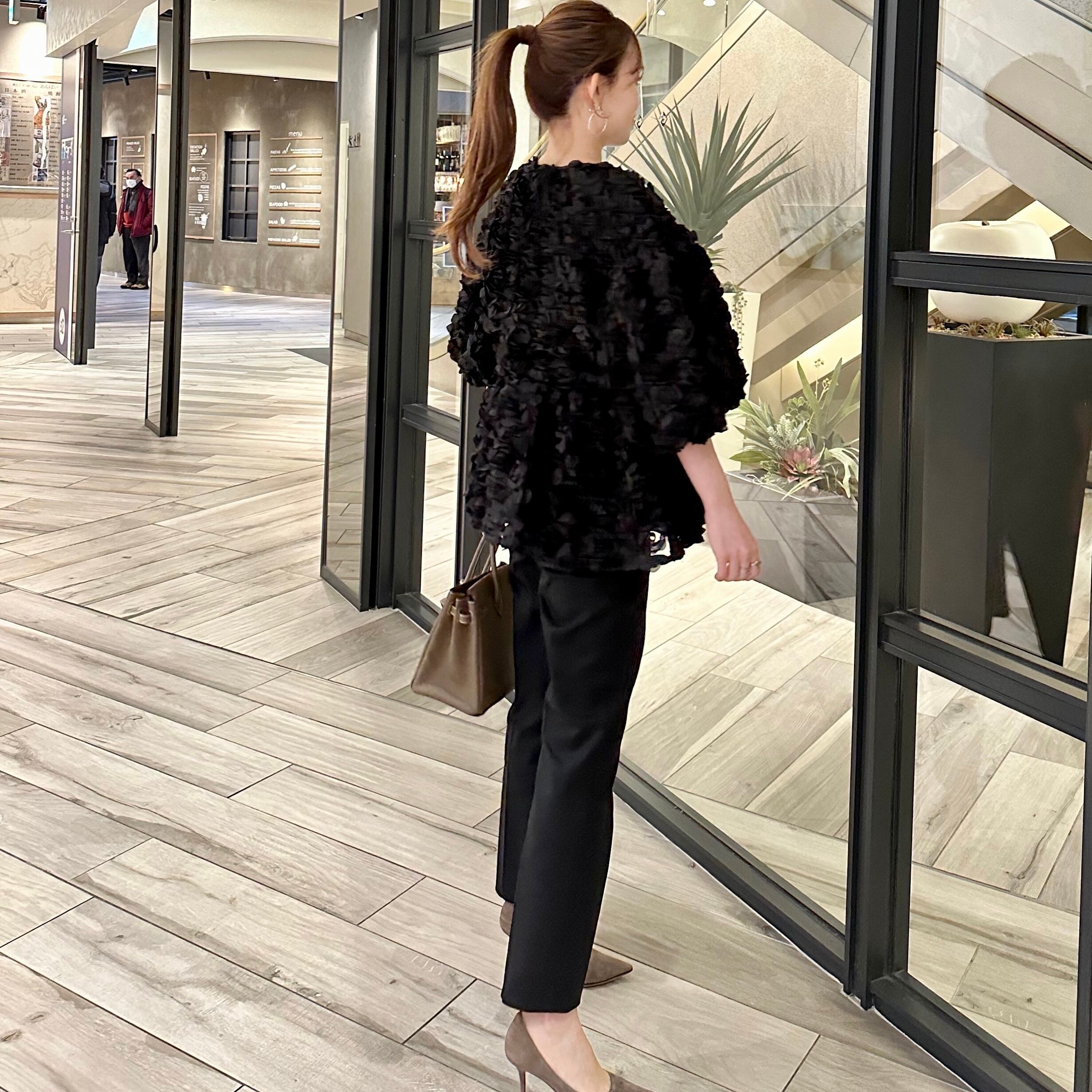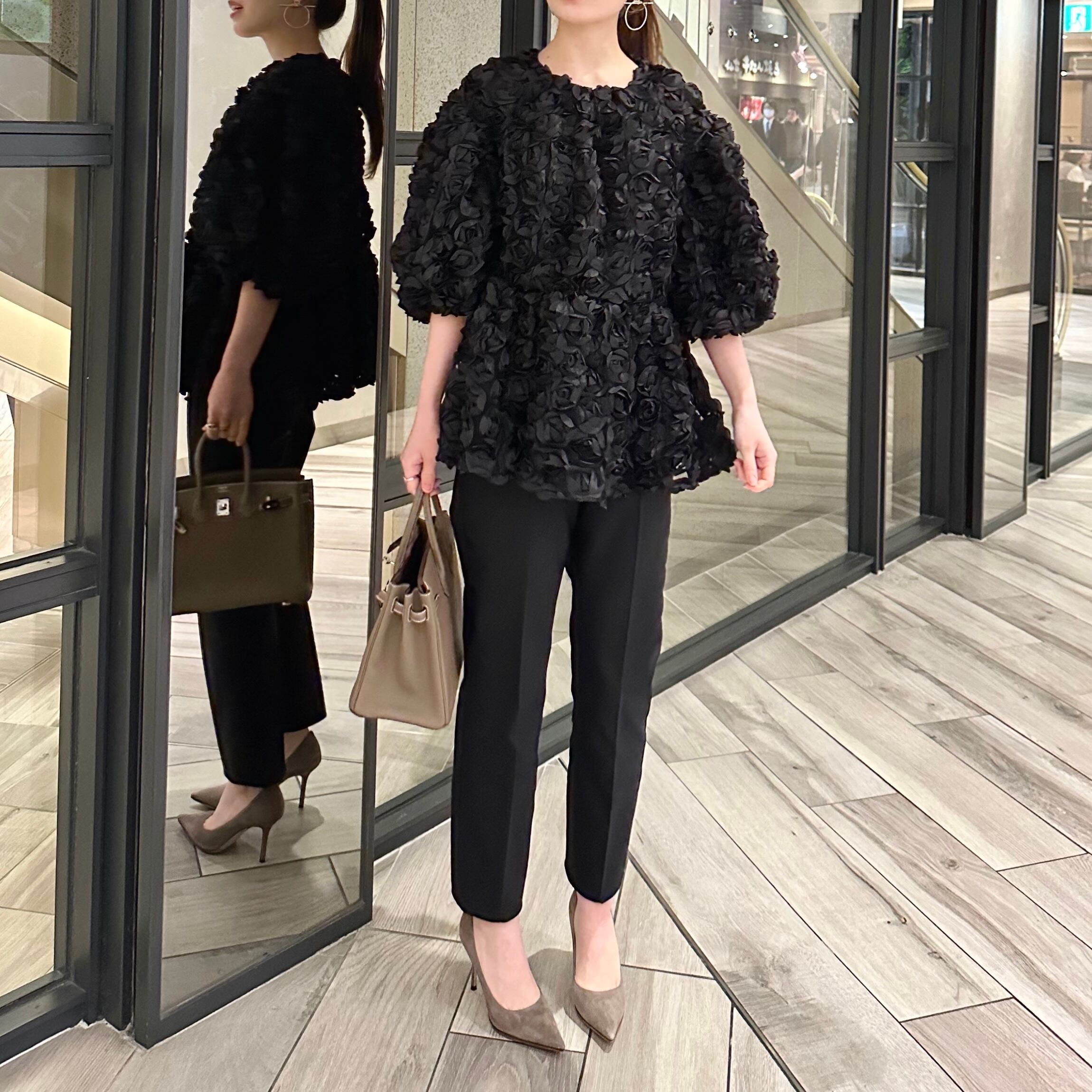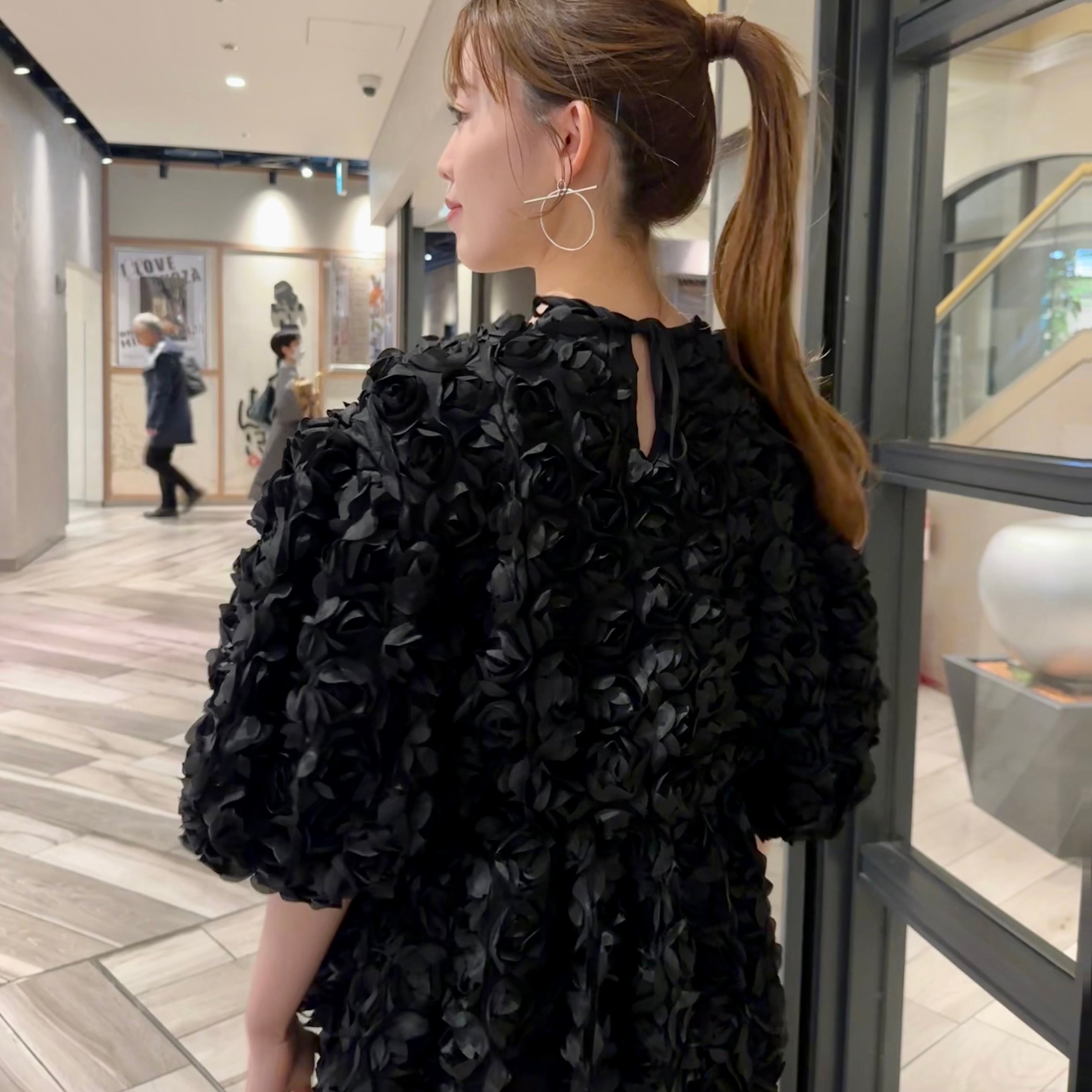 立体的なお花を散りばめたデザインが華やかでリッチなバルーントップス。