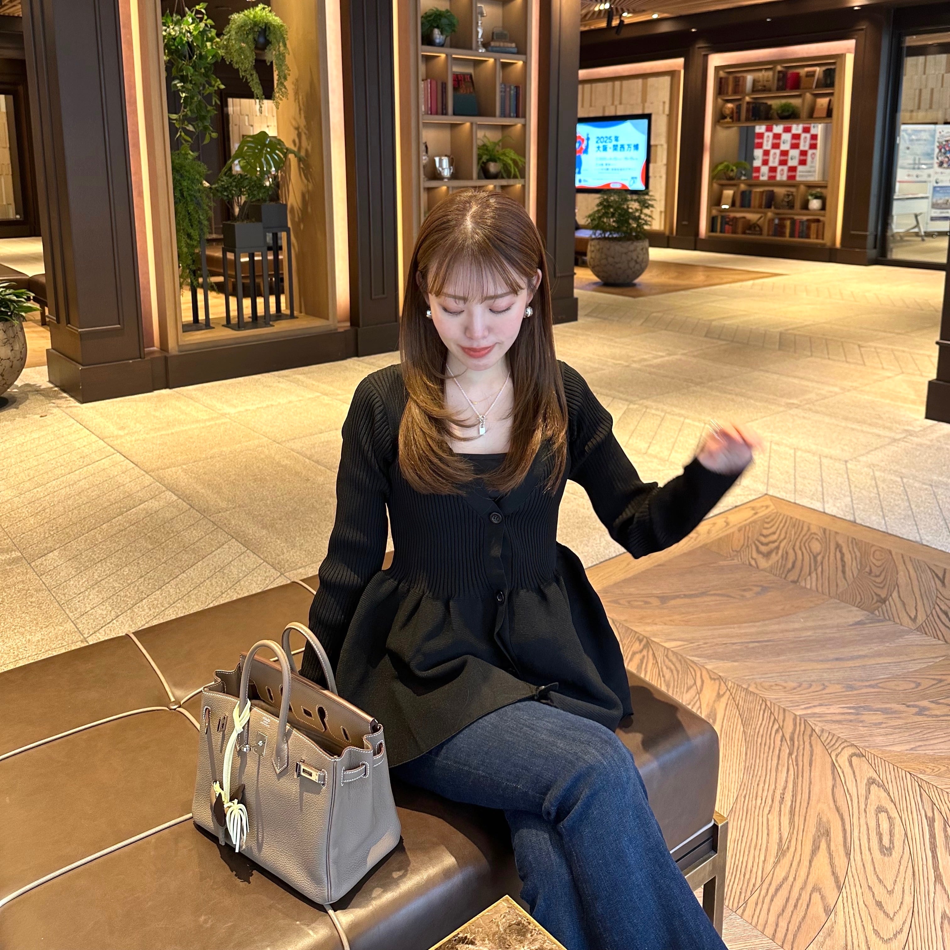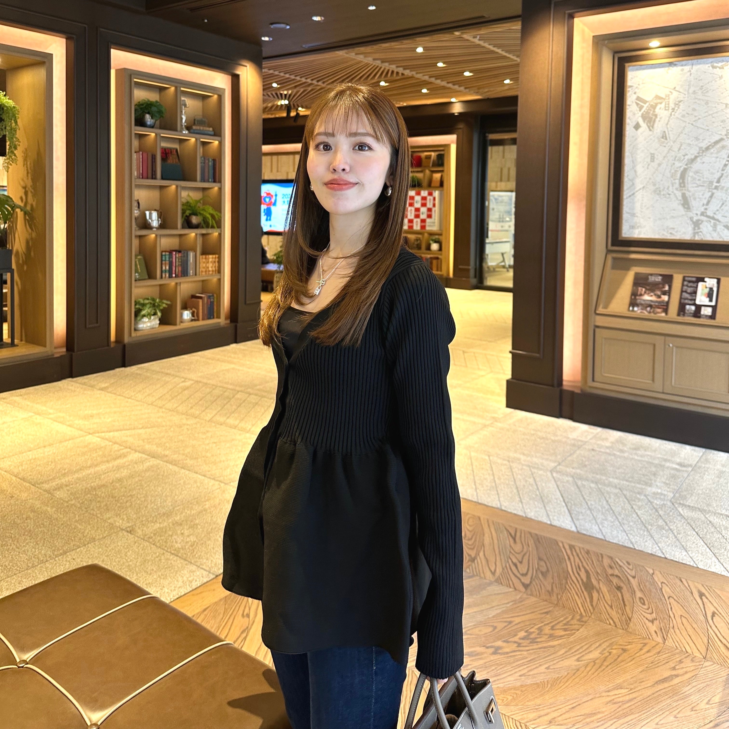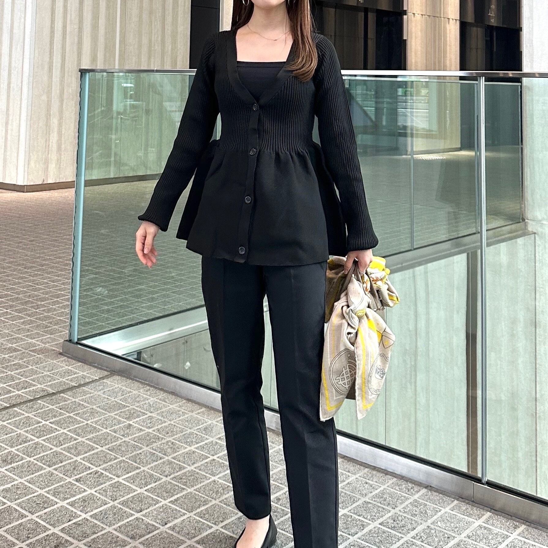 体型を綺麗にカバーしつつ女性らしいシルエットのペプラムデザインでドラマティックな印象に映る一枚。