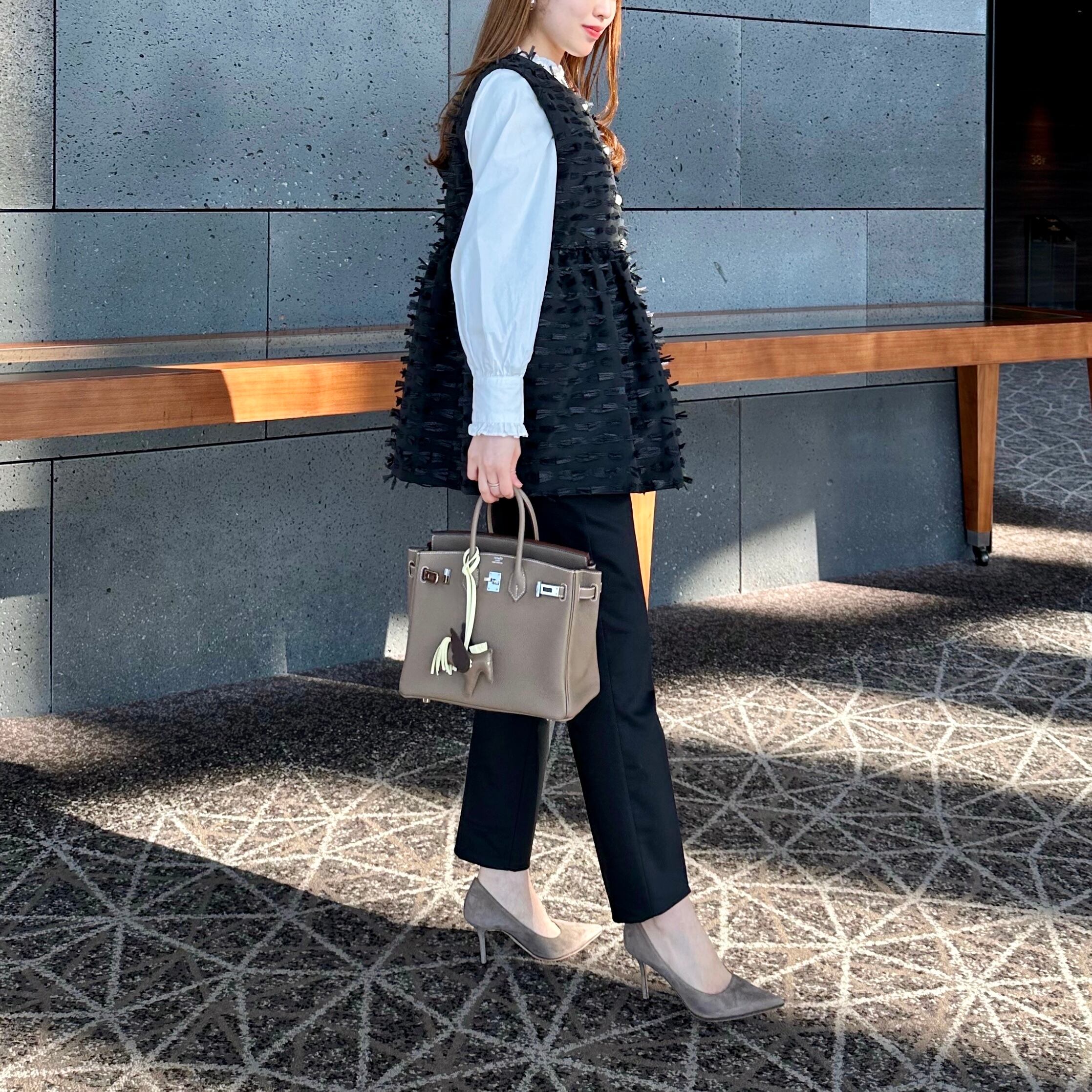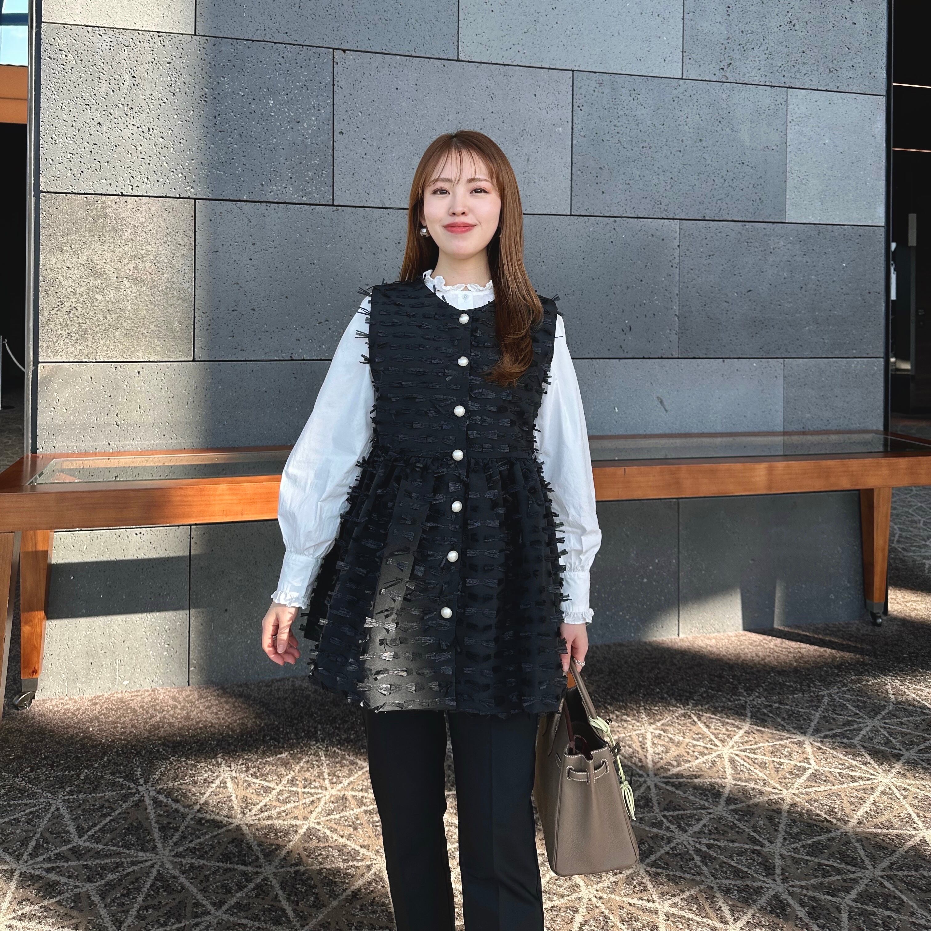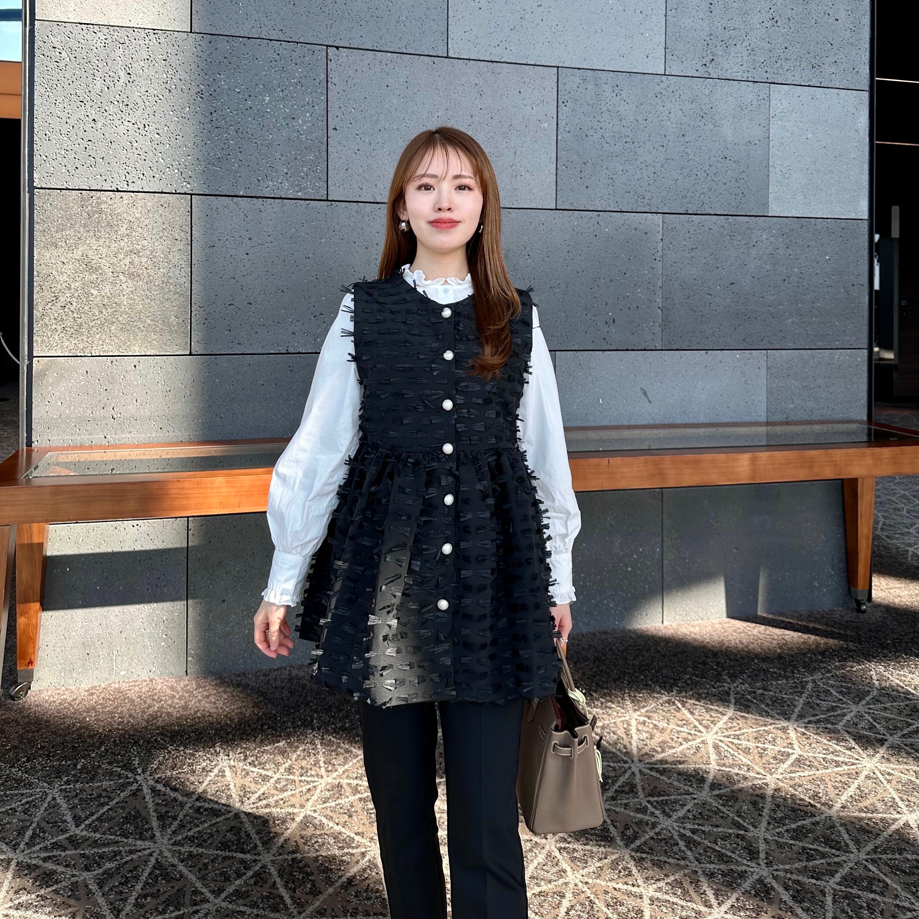 フロントパールボタンが華やかな印象を与えます。